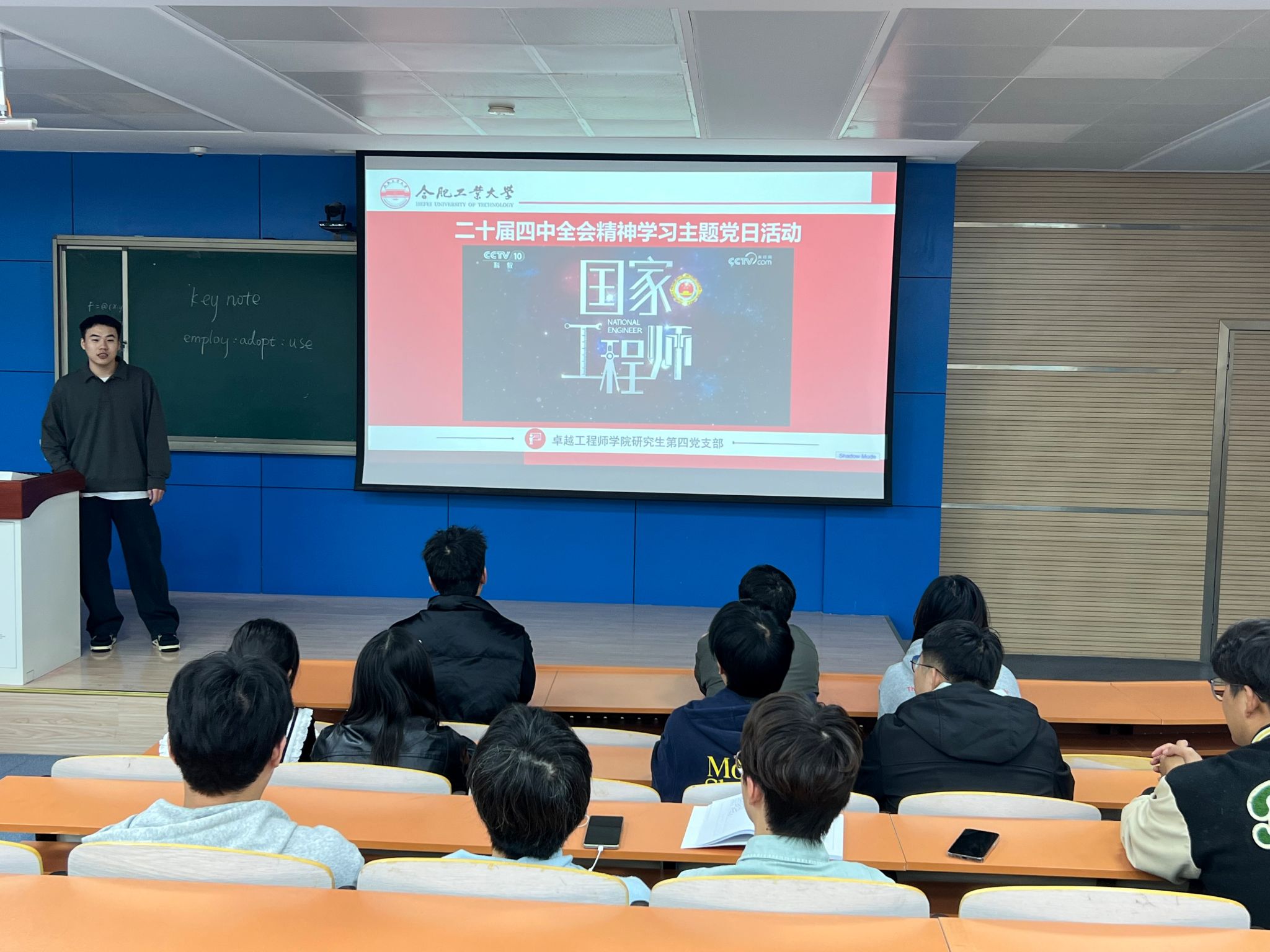 近日,为深入学习贯彻党的二十届四中全会精神,加强研究生党员思想政治教育,筑牢理想信念根基,卓越工程师学院研究生各党支部精心组织,开展了形式多样、内容丰富的主题党日活动。