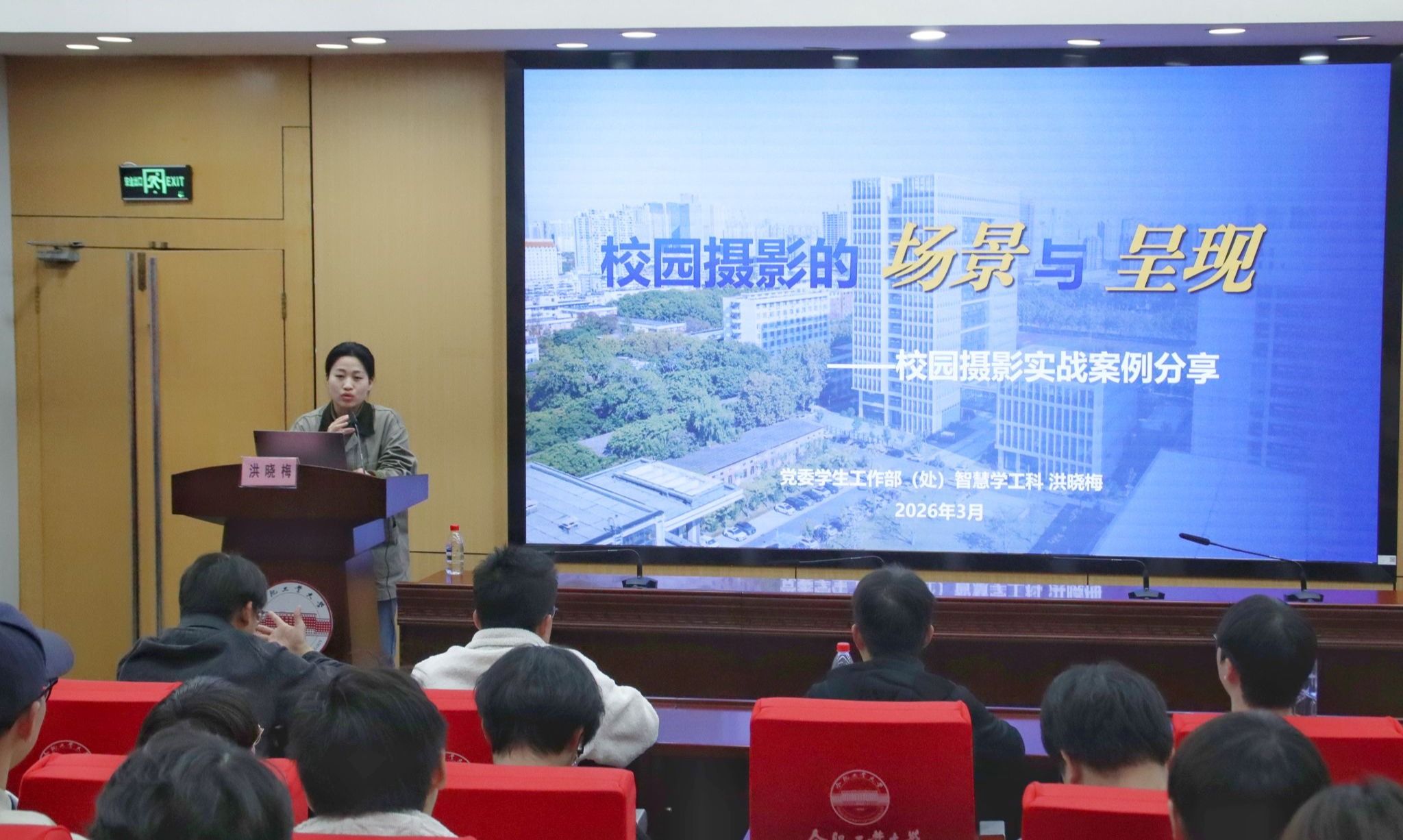 为提升学生骨干宣传素养与校园摄影实战能力,卓越工程师学院于3月26日在屯溪路校区学术会议中心举办“卓越·成长派”学生骨干训练营校园摄影专题培训。校党委学生工作部智慧学工科科长、明理苑大学生网络文化工作室指导教师洪晓梅受邀主讲,主题为“校园摄影的场景与呈现——校园摄影实战案例分析”,学院相关负责老师及全体学生骨干参训。