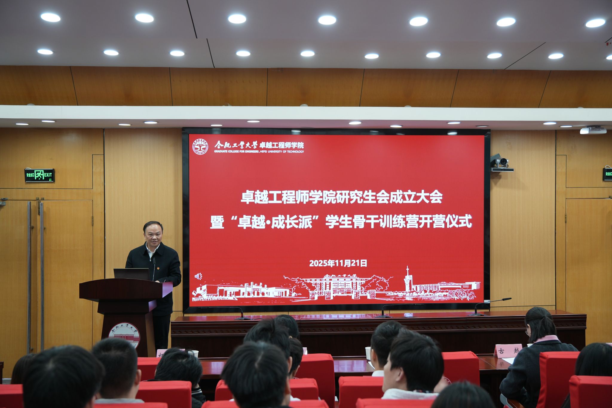 为搭建学生自我管理与能力提升平台,凝聚青年学生骨干力量,助力卓越工程师培养,11 月 21 日下午,卓越工程师学院在屯溪路校区举办研究生会成立大会暨 “卓越・成长派” 学生骨干训练营开营仪式。学院党委书记丁兆罡、校团委副书记刘芳芳及学院相关负责老师参加会议,学院学生工作办公室主任杨炳新主持会议。